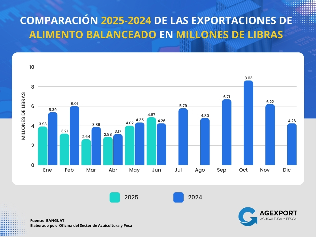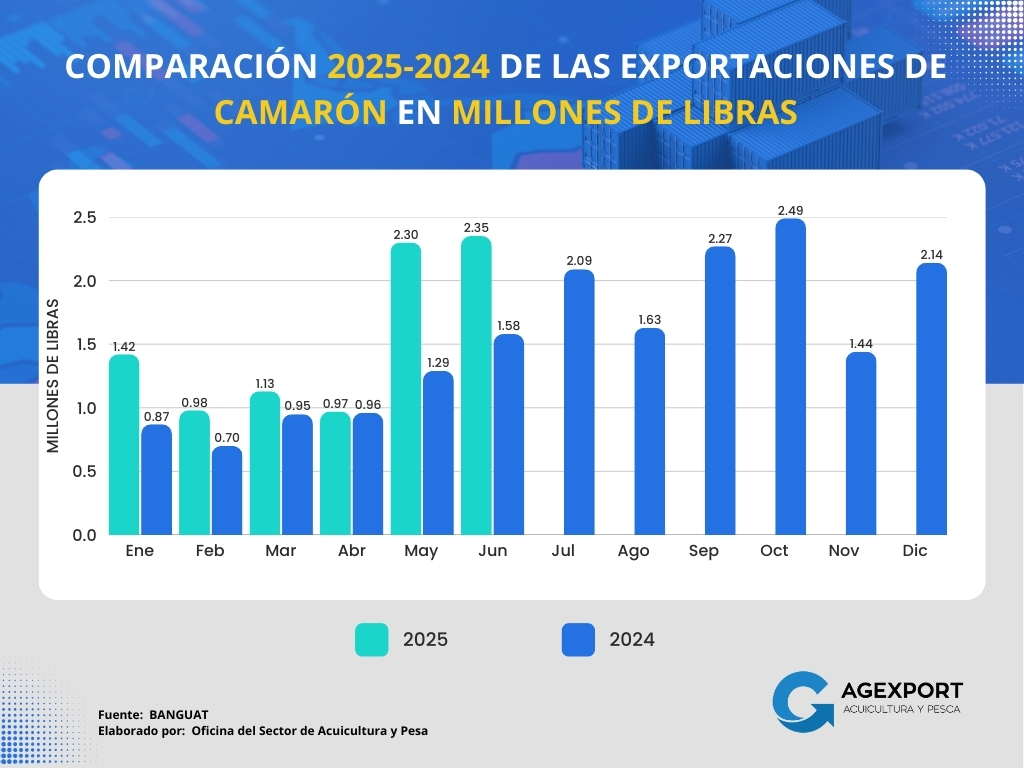 – Volumen: A junio 2025 se observa un aumento en el volumen de exportaciones de atún, alcanzando los 10.15 millones de libras, lo que representa un incremento del 15% en comparación con las 8.79 millones de libras exportadas en el mismo periodo de 2024.